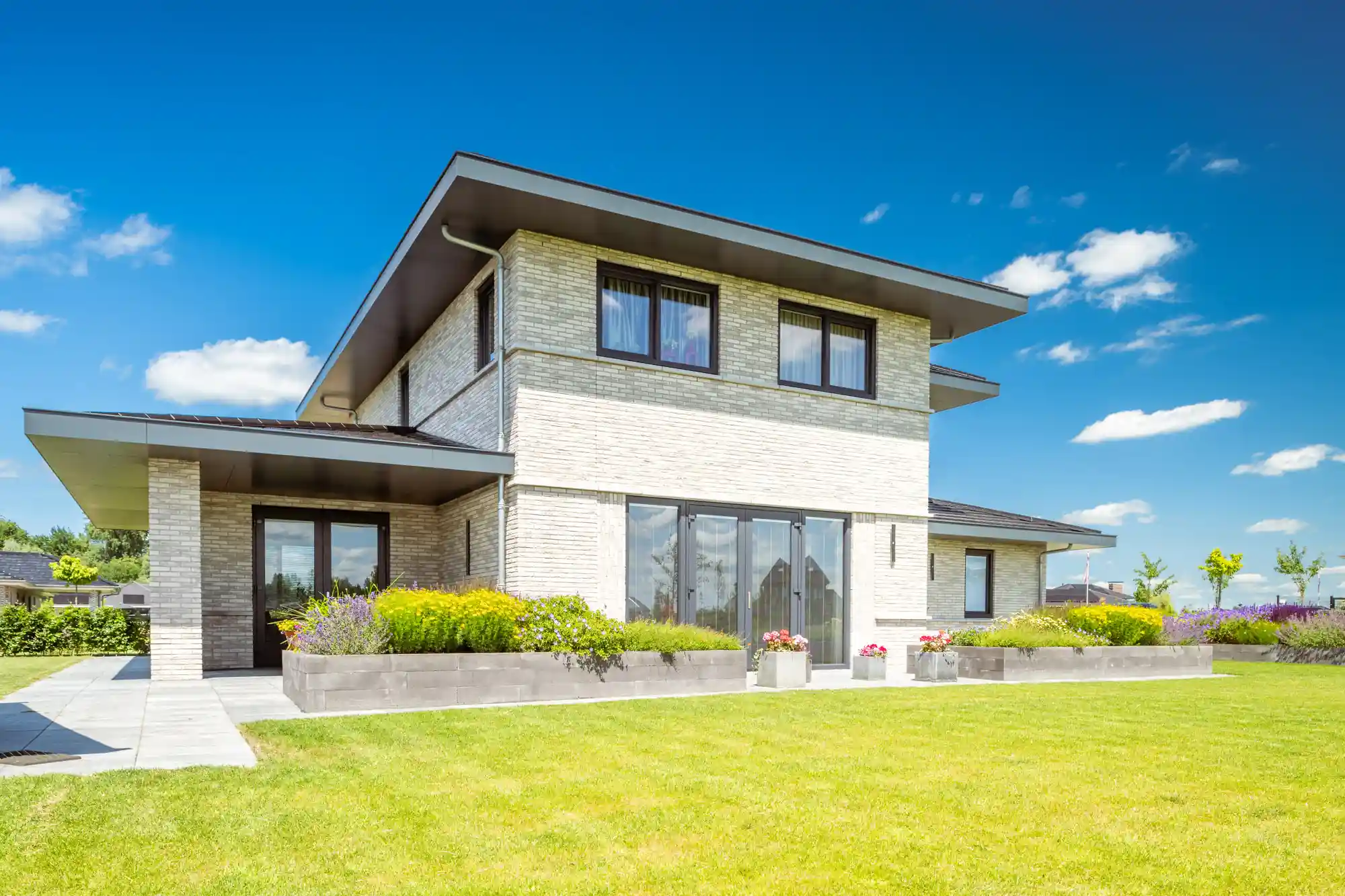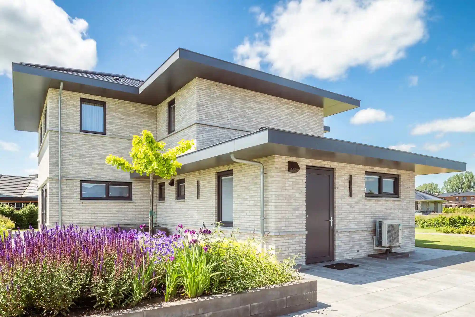| Bijzonderheden | Grote raampartijen, licht metselwerk met donkere aluminium kozijnen, houten voordeur, geïntegreerde zonnepanelen, luxe afwerking |